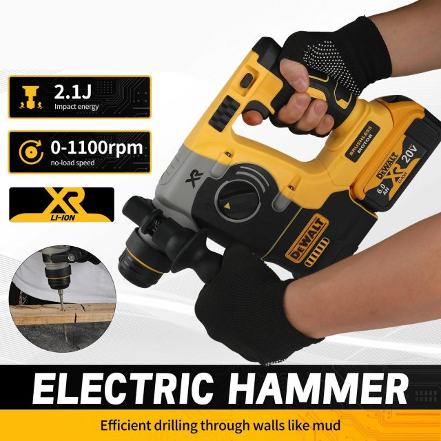 Cordless Brushless Rotary Hammer with 20V Power and 2.1J Impact Energy