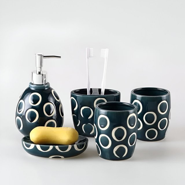 Transform your daily routine with this stunning deep-blue ice-cracked ceramic wash set. Designed for anyone who loves beautiful home details, this set brings a touch of luxury and creativity to even the simplest moments of your day. Its rich blue glaze paired with an artistic crackled finish gives your bathroom a refreshing, modern look. With its smooth curves and solid ceramic build, this set is both visually appealing and wonderfully practical.